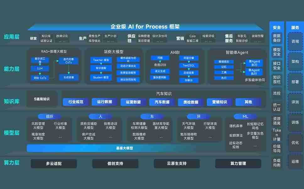 巅峰国际问学智车解决方案是一套基于AI技术的汽车行业智能化系统,,,,覆盖从底层算力到顶层AI应用的全栈方案。。。方案由算力层、、模型层和应用层组成:算力层,,,,方案支持多种一体机配置,,,,具备云端灵活部署、、多云适配以及动态优化计算资源的能力;模型层,,,,巅峰国际问学平台版提供了企业级AI应用一站式构建与管理平台,,,,支持基于后训练强化技术的汽车企业专属模型的训练、、评测和运营;应用层,,,巅峰国际问学DeepSeek版提供包括超级员工、、、、智能招采、、智能营销、、、智能客服、、AI for BI等一系列解决方案,,,可助力汽车行业实现数字化转型,,,,让管理更智能、、、响应更敏捷。。。。