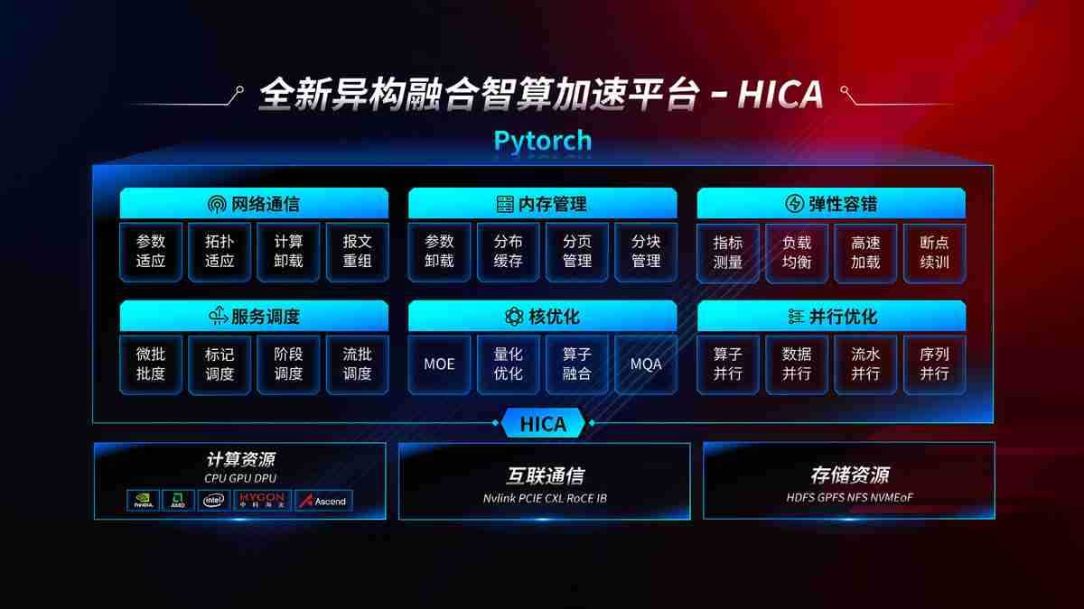 通过自研的服务层、、、中间适配层、、、、以及调度编排算法,,,采用数据并行、、、、模型并行等多种并行方式,,,把并行计算任务进行有效的分解,,使其分别由相应的软件栈和算力资源来承接。。当GPU资源变化,,,,HICA可以实时动态调度计算子任务并调整模型拓扑和架构,,以充分聚合各种算力资源。。。。